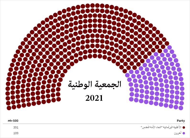 شكل (7) الجماعات السياسية في الجمعية الوطنية، بعد إعادة تشكيل الأغلبية البرلمانية 2021م (من إعداد الباحث)