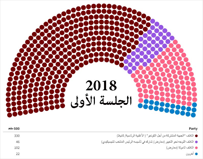 شكل (6) الجماعات السياسية في الجمعية الوطنية، الجلسة الأولى 2018 (من إعداد الباحث)