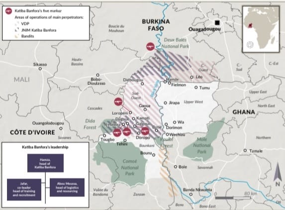 خلصت دراسة أعدتها “المبادرة العالمية ضد الجريمة المنظمة عبر الوطنية”، إلى اقتراح توصيات لضمان الأمن في منطقة الحدود بين بوركينا فاسو وغانا وساحل العاج، منبهة إلى أن سرقة وتهريب الماشية يعد “أداة اقتصادية”، وآلية “لفرض السيطرة”، سواء بالنسبة للجماعات المسلحة ممثلة في جماعة نصرة الإسلام والمسلمين، أو بالنسبة لقوات الأمن ببعض بلدان منطقة الساحل، أو قوات الدفاع الذاتي التي تقاتل إلى جانب القوات الوطنية.