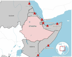 المصدر: إيمان الشعراوي، تهديدات آبي أحمد: هل تدقّ إثيوبيا الحبيسة طبول الحرب في موانئ القرن الإفريقي؟، قراءات إفريقية، أكتوبر 26, 2023م، متاح على الرابط التالي: https://surl.li/enofyx