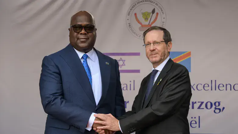 تطرقت القناة الإسرائيلية السابعة لزيارة هرتسوغ إلى جمهورية الكونغو الديمقراطية، وهي الزيارة التي استمرت ساعات قليلة فقط، ولدى وصوله، استُقْبِلَ في مراسم رسمية أُقيمت في القصر الرئاسي مِن قِبَل رئيس الكونغو، فيليكس تشيسكيدي، بعدها عقد الزعيمان اجتماعًا سياسيًّا، وفي نهايته أدليا بتصريحات مشتركة لوسائل الإعلام.