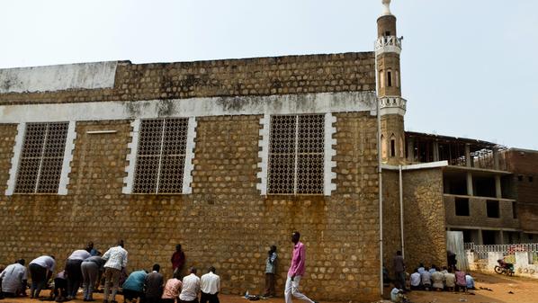 This photo taken on July 20, 2012, shows men praying outside the mosque in Juba on the first day of Ramadan. Muslims fasting during the month of Ramadan must abstain from food, drink and sex from dawn to dusk, when they break the fast with a meal known as Iftar. AFP PHOTO / CAMILLE LEPAGE (Photo credit should read CAMILLE LEPAGE/AFP/GettyImages)