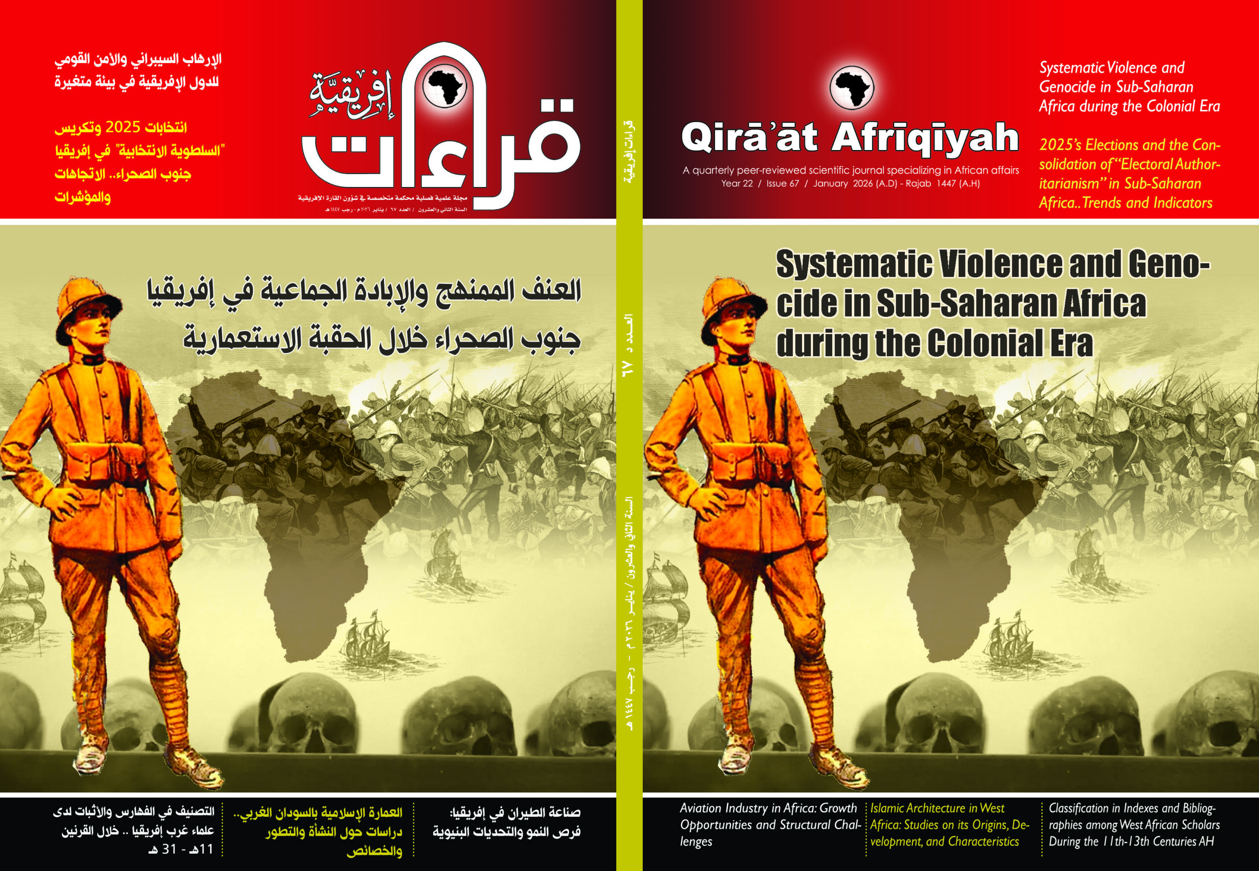 وجاء موضوع الغلاف بعنوان :” العنف الممنهج والإبادة الجماعية في إفريقيا جنوب الصحراء  ، خلال الحقبة الاستعمارية “ للباحث الدكتور بدوي رياض عبد السميع ، أستاذ التاريخ الحديث والمعاصر المساعد- كلية الدراسات الإفريقية العليا- جامعة القاهرة.