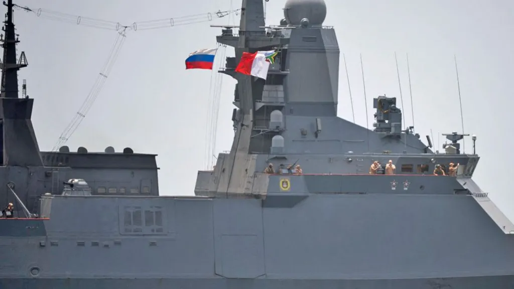 وخلال الأيام الماضية، شوهدت سفن ترفع أعلام الصين وإيران وروسيا وهي تدخل القاعدة البحرية الرئيسية لجنوب إفريقيا في سيمونز تاون، قرب كيب تاون، إيذانًا ببدء المناورات التي تستمر أسبوعًا، وتقودها الصين بمشاركة دول من تحالف “بريكس+”.