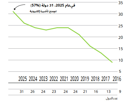 6- ارتفاع الدول المطبقة للتأشيرات الإلكترونية وتباين السياسات الإقليمية.