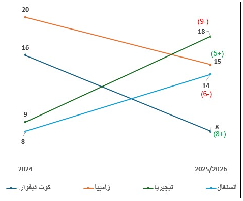 2- الدول التي سجلت تراجعاً ملحوظاً في مؤشر «أين تستثمر في إفريقيا» 2025/2026: