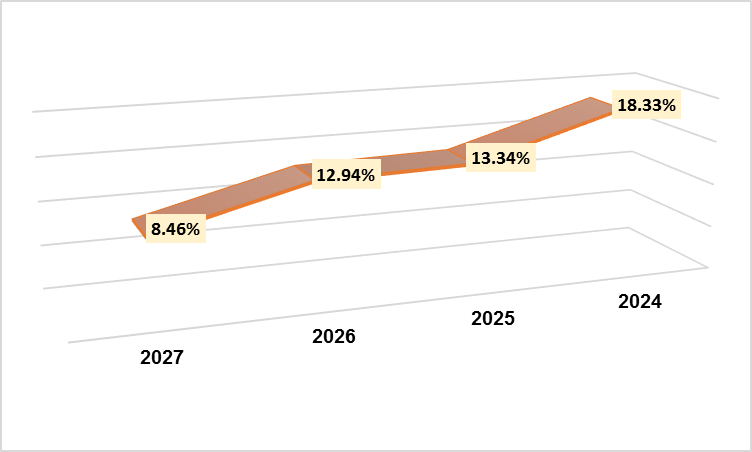 انخفض التضخم في معظم الاقتصادات الإفريقية، مدعوماً باستقرار سعر الصرف. مع ذلك؛ لا يزال تضخم أسعار المواد الغذائية مرتفعاً- يتجاوز 10% في العديد من البلدان- ما يعكس مواطن الضعف الهيكلية والصدمات المرتبطة بالمناخ. يتطلب تحقيق تقدّم مستدام في مكافحة التضخم مزيجاً متوازناً من السياسات، يجمع بين أطر نقدية موثوقة لترسيخ التوقعات، وتدابير مالية موجهة لدعم الأسر الأكثر ضعفاً، واستثمارات إستراتيجية في النظم الغذائية والخدمات اللوجستية لتخفيف قيود العرض[19]. ووفقاً للشكل التالي؛ من المتوقع أن يتراجع معدل التضخم في المنطقة من 13.34% في عام 2025م إلى 12.94%.