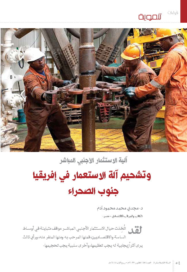 Abstract: The imperialist powers did not escape their former colonies, without leaving behind them, whether their investment policy in infrastructure from the taxes of Africans, or the elites that inherited the rule, or through the preparation of international institutions of indirect rule. All of this put African countries in the mold of specializing in the production and export of commodities and primary raw materials, in a relationship of commercial investment dependency, involved in a neoliberal system that monopolizes goods and exports crises. Foreign direct investment used to flow into Africa to reap certain wealth, and extract its profits, leaving a deficit in the balance of payments, which did not provide job opportunities or technology, destroying local industries and crafts, disrupting production, and causing a budget deficit. It is calculated only as happy numbers when it enters, to appear in bad growth rates. , It does not have real repercussions on development, although it is positive in numbers in many cases. Foreign direct investment provides foreign exchange for importing what was previously exported, raw, at many times the price. The relationship of the former colonizer had several roles in seizing investment opportunities, in partnership with the Comprador elite, and in reducing institutional distance. And using the stick at times and the carrot at other times to acquiesce in the former colony on its investment policies, which was practiced by most of the former colonial countries, and the new superpowers such as the United States. However, China was more subtle, as it benefited from the mistakes of others, so it was at the forefront of investors in a new colonial relationship, and both remained the main source of incoming capital and the leading trading partner. With the flight of capital in cases dominated by whites, and its preservation of a presence in the local market. from regional and preferential markets. It also had a negative impact on the integration process on the continent. Foreign direct investment was a mechanism to lubricate the old colonial machine.