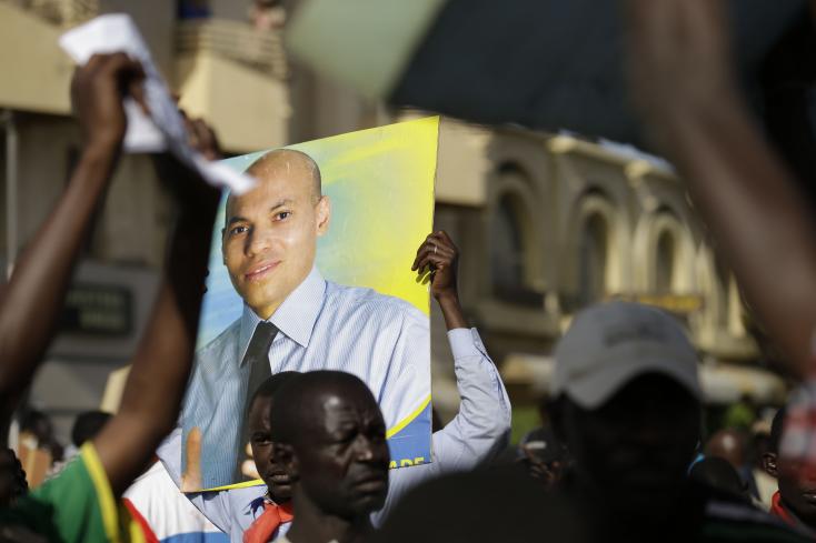 Opposition activists with the poster of Karim Wade, former advisor then minister under the presidency of his father Abdoulaye Wade. © AP Photo/Rebecca Blackwell