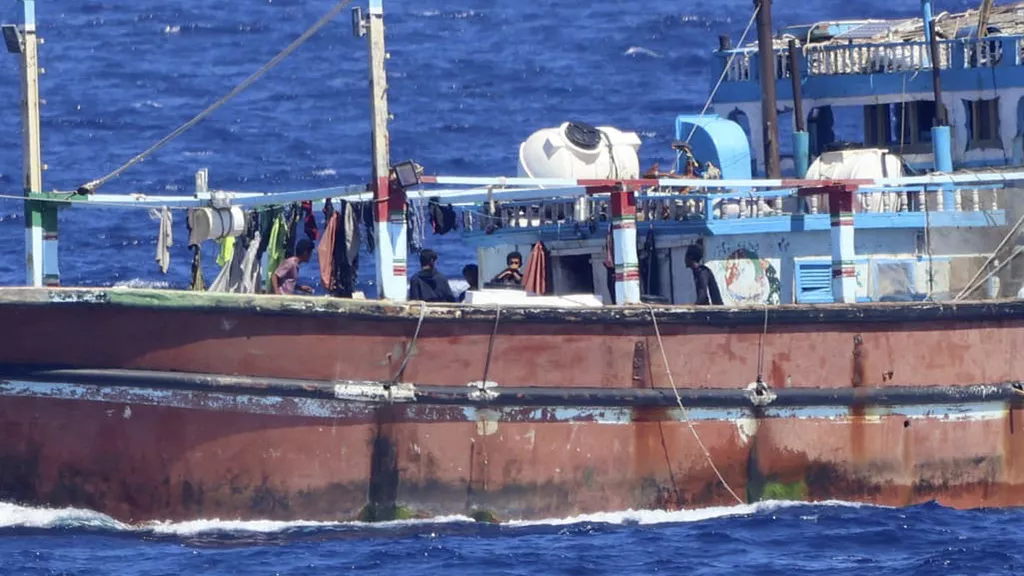 An Iranian fishing vessel hijacked by pirates after being intercepted by the navy - AP/AP