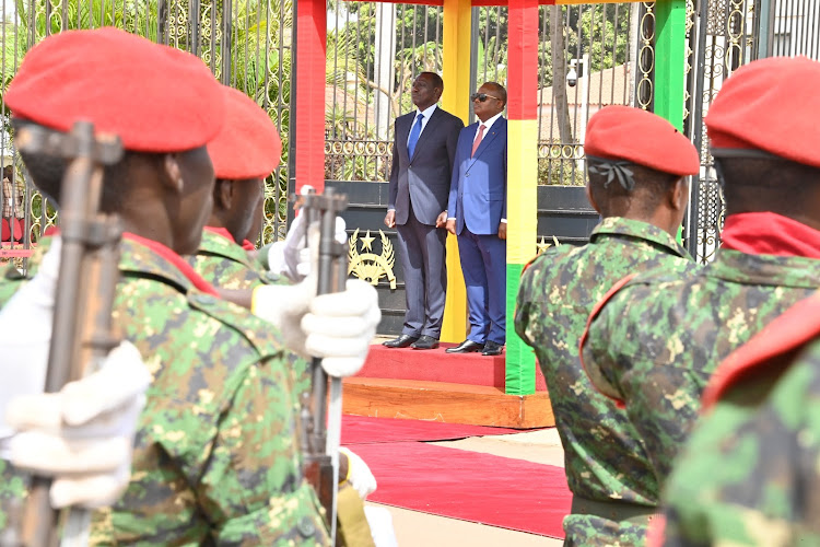 President William Ruto and Guinea Bissau President Umaro Sissoco Embalo inspecting Guard of Honor on April 5, 2024. Image: PCS