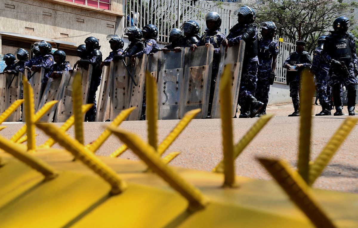 FILE PHOTO: Ugandan police officers stand in a formation during a rally against what the protesters say are rampant corruption and human rights abuses by the country's rulers in Kampala, Uganda July 23, 2024. REUTERS/Abubaker Lubowa/File Photo