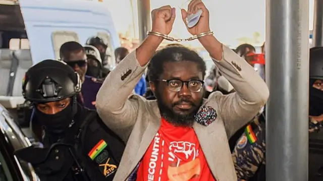Barker Vormawor, still recovering after collapsing in police custody earlier in the week, was escorted by officers from the police hospital directly to the courtroom.