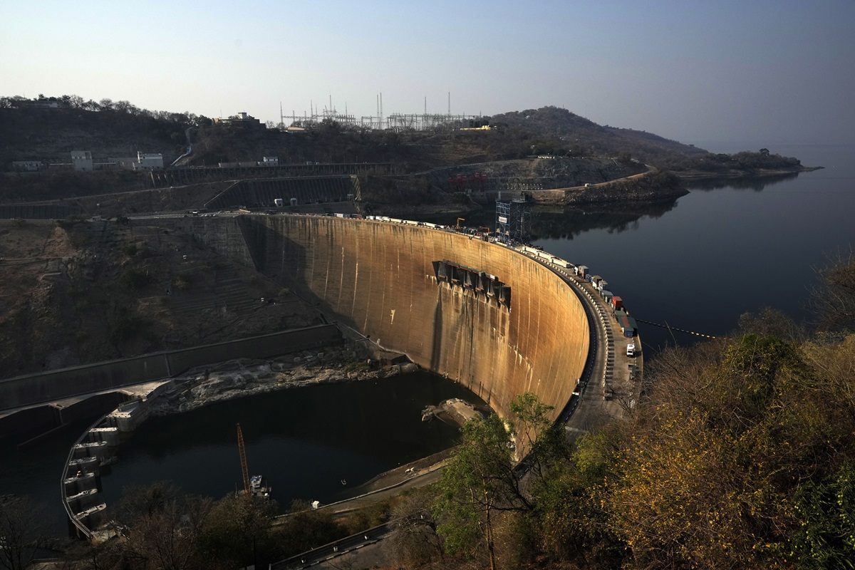 This photo shows the dam wall at Lake Kariba in Siavonga, Zambia, Thursday, Sept. 19, 2024. (AP Photo/Themba Hadebe)