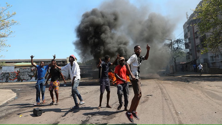 Protestors and supporters of Mozambique’s Renamo opposition party barricade streets during a protest against the recent election.