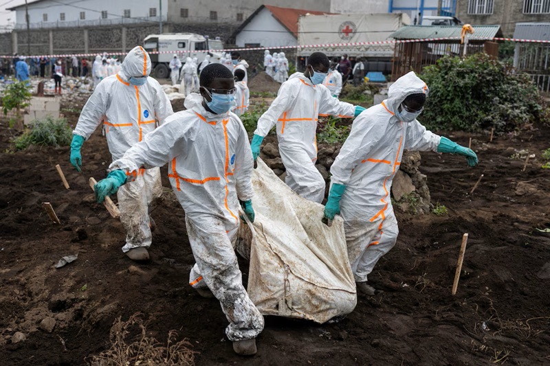 In Goma, aid groups have been helping authorities relieve overflowing hospital morgues and bury bodies amid concerns of disease spreading.