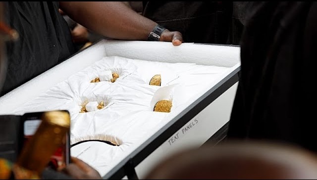 The artefacts included royal regalia, drums, and ceremonial gold weights. Dating between 45 and 160 years old, they depict governance systems, spiritual beliefs, and the role of gold in Asante society.