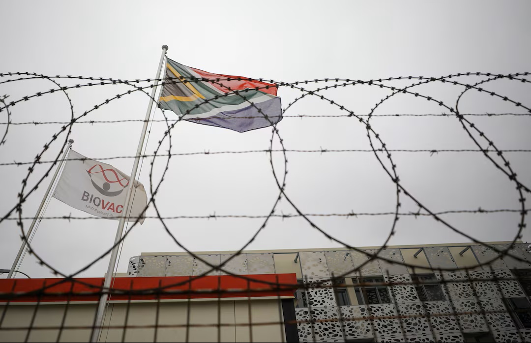 [2/2]A South African flag flies beside a flag bearing the logo of the local vaccine manufacturing and storage company Biovac outside the company's offices in Cape Town, South Africa, March 18, 2021. REUTERS/Mike Hutchings