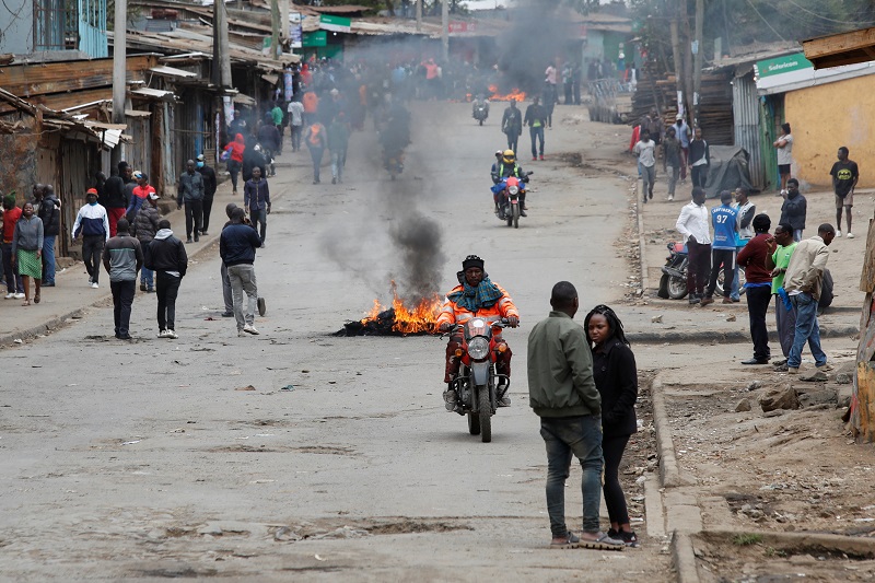 Protesters burned tires in the Kibera neighbourhood, often a flashpoint for stand-offs with security forces, and were met with volleys of tear gas by police.