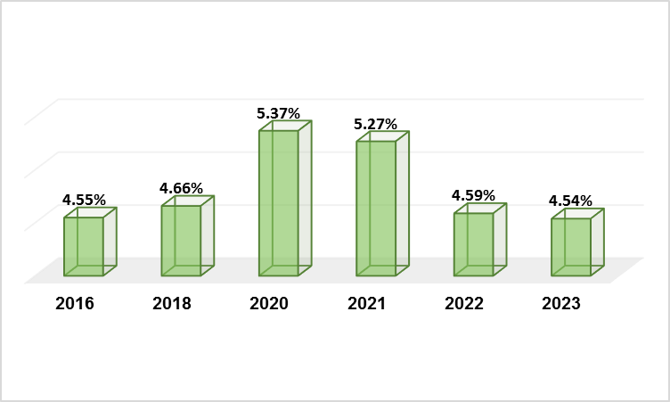 • ارتفع إنتاج الحبوب بنسبة 4.27% من 4.035.069 طن في عام 2022 إلى 4.207.502 طن عام 2023. ومنذ الزيادة البالغة 8.12% في عام 2013، ارتفع بنسبة 47.18% عام 2023.