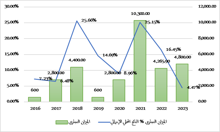 شكل رقم (8) الفائض والعجز في الميزان التجاري للكونغو الديمقراطية
