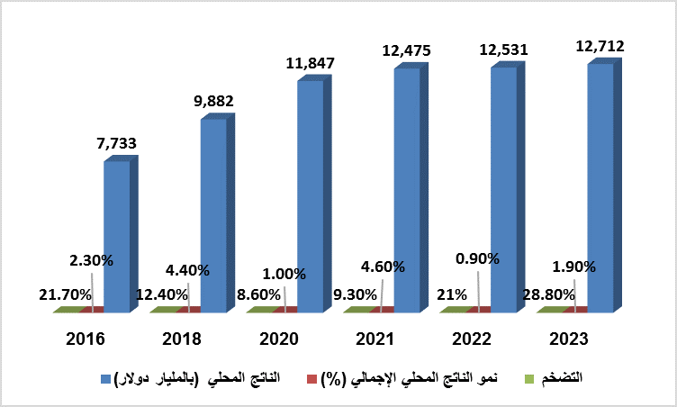 نما الناتج المحلي الإجمالي لملاوي بنسبة 1.9% في عام 2023 مقارنةً بالعام الماضي. ويزيد هذا المعدل بنسبة 1% عن نسبة 0.9% المنشورة في عام 2022. بلغ الناتج المحلي الإجمالي 12.712 مليار دولار أمريكي في عام 2023، وانخفضت القيمة المطلقة له بمقدار 181 مليون دولار مقارنةً بعام 2022. ([3]) ويبين الشكل التالي تطور الناتج المحلي ومعدلات التضخم في ملاوي.