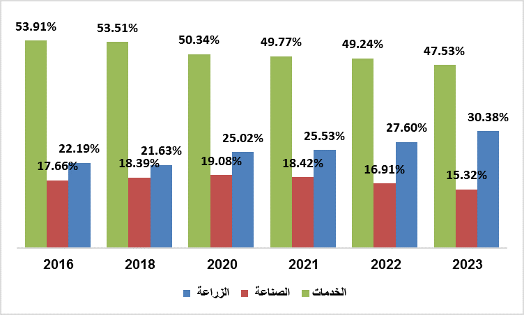 شكل رقم (3) مساهمة القطاعات المختلفة في تكوين الناتج المحلي الإجمالي