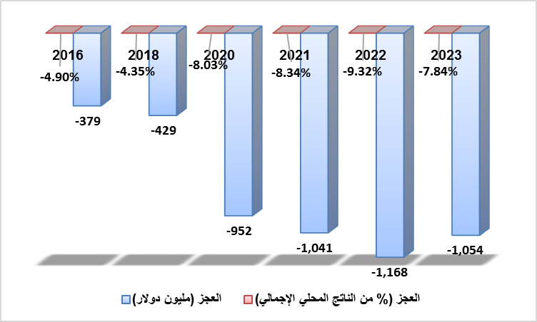 اتسع العجز المالي من 9.6% من الناتج المحلي الإجمالي في عام 2022 إلى 10.1% في عام 2023، مما يعكس تجاوز فاتورة الأجور للميزانية وضعف أداء الإيرادات. بلغ الدين العام 82.1% من الناتج المحلي الإجمالي في عام 2023، بزيادة قدرها 5.6% عن العام السابق. اتسع عجز الحساب الجاري من 2.8% من الناتج المحلي الإجمالي في عام 2022 إلى 7.3% في عام 2023، حيث أدى الانتعاش الاقتصادي إلى زيادة الطلب على الواردات. وقد أدى ضعف أداء الصادرات بشكل عام إلى إبقاء الاحتياطيات الدولية منخفضة. بلغت القروض المتعثرة 6.6% من إجمالي القروض في 31 ديسمبر 2022، وهي نسبة أعلى من المستوى المقبول دوليًا البالغ 5%. وعلى الرغم من ربحية القطاع المالي في عام 2023، فإن تعرضه المتزايد للحكومة يشكل تهديدًا للاستقرار. وارتفعت نسبة رأس المال الأساسي للقطاع المصرفي من 17% في عام 2021 إلى 19% في عام 2022، وارتفعت نسبة رأس المال الإجمالي من 20% إلى 22.4%. لا يزال الفقر يشكل تحديًا، حيث يعيش 72% من السكان تحت خط الفقر الدولي البالغ 2.15 دولار أمريكي في عام 2023، بزيادة طفيفة عن 70.1% في عام 2019. وتحسن معدل البطالة بشكل طفيف، من 6.8% في عام 2022 إلى 6.7% في عام 2023. ([2])