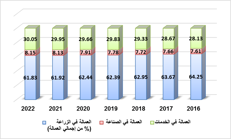 شكل رقم (5) توزيع العمالة على القطاعات المختلفة