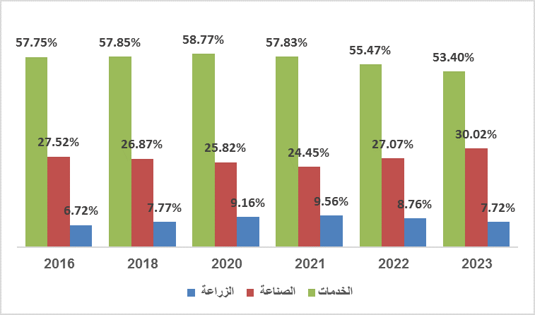 شكل رقم (3) مساهمة القطاعات المختلفة في تكوين الناتج المحلي الإجمالي