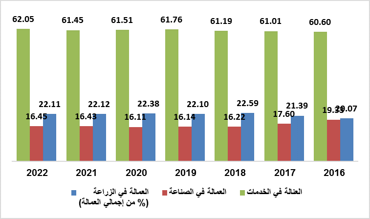 شكل رقم (5) توزيع العمالة على القطاعات المختلفة
