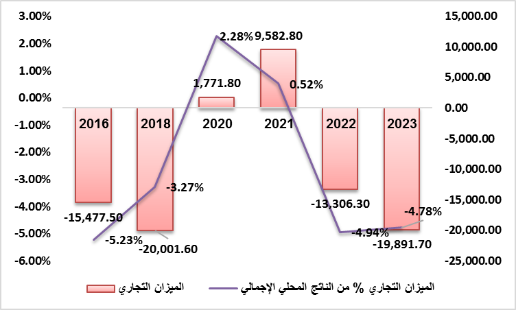 شكل رقم (8) الفائض والعجز في الميزان التجاري