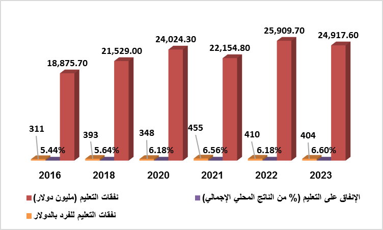بلغ الإنفاق على التعليم، كنسبة مئوية من الناتج المحلي الإجمالي جنوب أفريقيا: لعام ٢٠٢٣، ٦.١٥٪، بانخفاض عن ٦.١٧٪ في عام ٢٠٢٢. تاريخيًا، بلغ متوسط جنوب أفريقيا من عام ١٩٨٧ إلى عام ٢٠٢٣ ٥.١٧٪. وقد تم الوصول إلى الحد الأدنى، ٤.٣٥٪، في عام ٢٠٠٣، بينما سُجلت أعلى قيمة وهي ٦.٥٥٪ في عام ٢٠٢١. ([1])