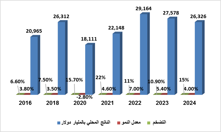 بينما شهد الناتج المحلي الإجمالي الحقيقي نموًا مطردًا، من 5.2% في عام 2022 إلى 5.8% في عام 2023، مدفوعًا بتجارة الجملة والتجزئة والزراعة والتعدين والمحاجر من جانب العرض، وباستهلاك الأسر والشركات من جانب الطلب. ولا تزال الضغوط التضخمية قائمة، حيث بلغ معدل التضخم 11% في نهاية عام 2022 و10.9% في نهاية عام 2023، مدفوعًا بشكل رئيسي بأسعار الغذاء والنقل وسعر الصرف الاسمي. وقد استهدفت السياسة النقدية الحد من الضغوط التضخمية، مع رفعها من 9.5% في سبتمبر 2022 إلى 11% في نوفمبر 2023.
