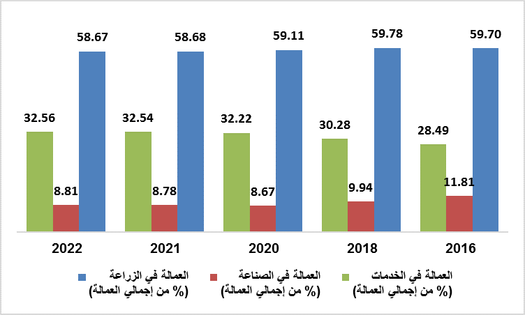 شكل رقم (5) توزيع العمالة على القطاعات المختلفة