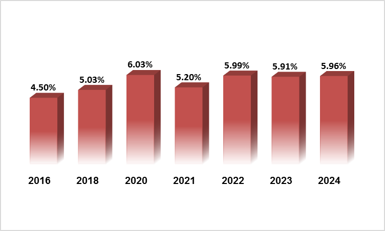 نما الناتج المحلي الإجمالي لزامبيا بنسبة 4% في عام 2024 مقارنةً بالعام الماضي. وهذا المعدل أقل بـ 1.4 % من الرقم المُعلن عام 2023 والبالغ 5.4%، بينما بلغ الناتج المحلي الإجمالي 26.326 مليار دولار أمريكي في عام 2024، وقد انخفضت القيمة المطلقة للناتج المحلي الإجمالي في زامبيا بمقدار 1.252 مليار دولار أمريكي مقارنةً بعام 2023. ([2]) ويوضح الشكل التالي معدلات نمو الناتج المحلي في زامبيا.