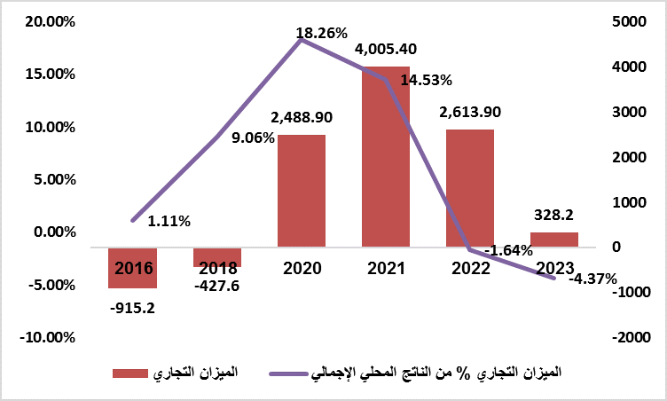 شكل رقم (8) الفائض والعجز في الميزان التجاري