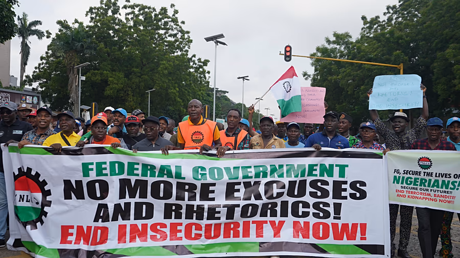 Des membres du principal syndicat nigérian ont défilé dans les rues de Lagos mercredi pour protester contre l’insécurité croissante, appelant le gouvernement à prendre des mesures urgentes pour protéger les vies et les biens.