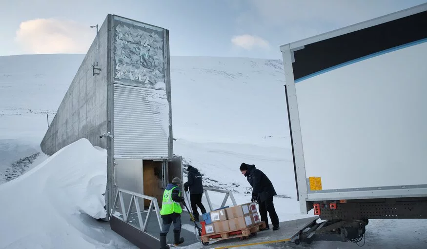 Il sert de sauvegarde pour plus de 1,2 million d’échantillons de semences, ce qui représente la plus vaste collection de diversité de cultures au monde en un seul endroit. Ce coffre-fort appartient au gouvernement norvégien et a été conçu pour résister aux catastrophes naturelles et humaines.